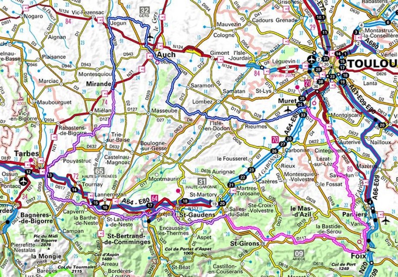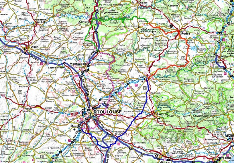 Occitanie : Muret / Foix / Tarbes / Montauban / Cahors / Rodez / Albi / Muret |
